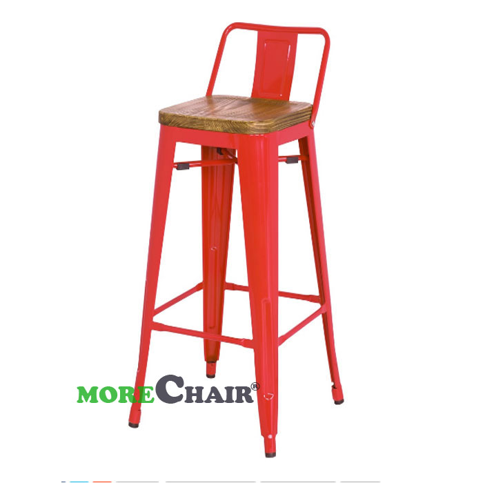 Thông số kỹ thuật cơ bản của Ghế bar Tolix tựa thấp mặt gỗ TL-06 màu đỏ