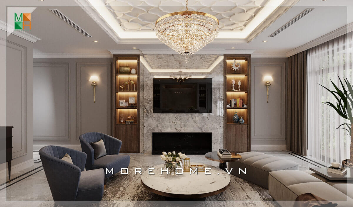 Thiết kế nội thất phòng khách biệt thự phong cách tân cổ điển sang trọng và đẳng cấp