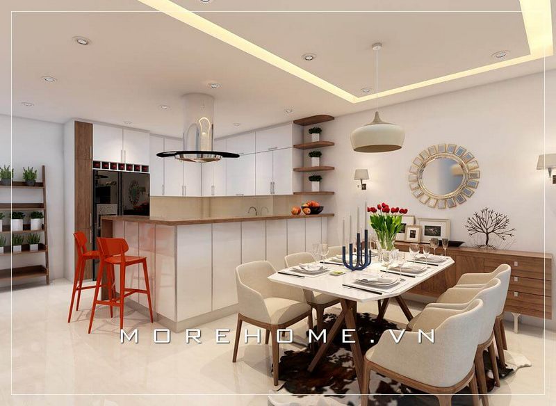 Lựa chọn lối thiết kế tân cổ điển tinh tế, tỉ mỉ, bàn ăn tân cổ điển với những đường cong chạm trổ khéo léo để lại cho bất kì ai nhìn vào một không gian dùng bữa ấm áp mà đẳng cấp hơn cả