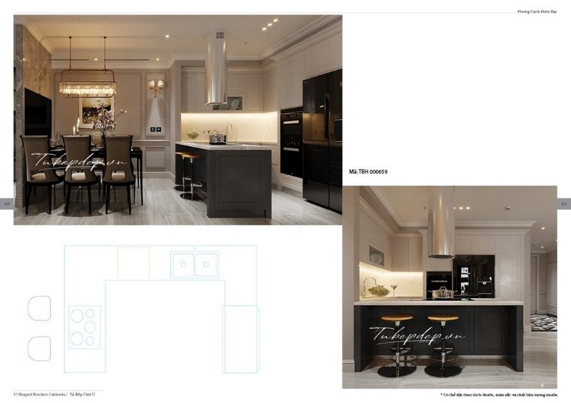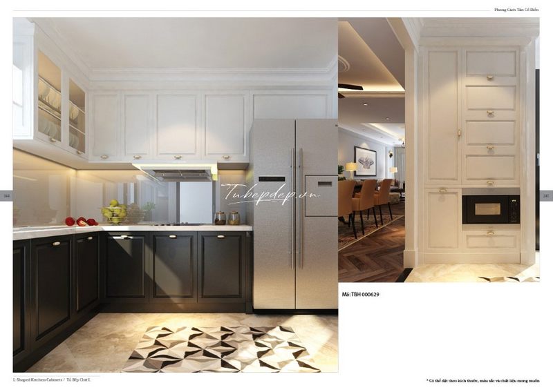 Thiết kế nội thất phòng bếp biệt thự tân cổ điển sang trọng, đẳng cấp