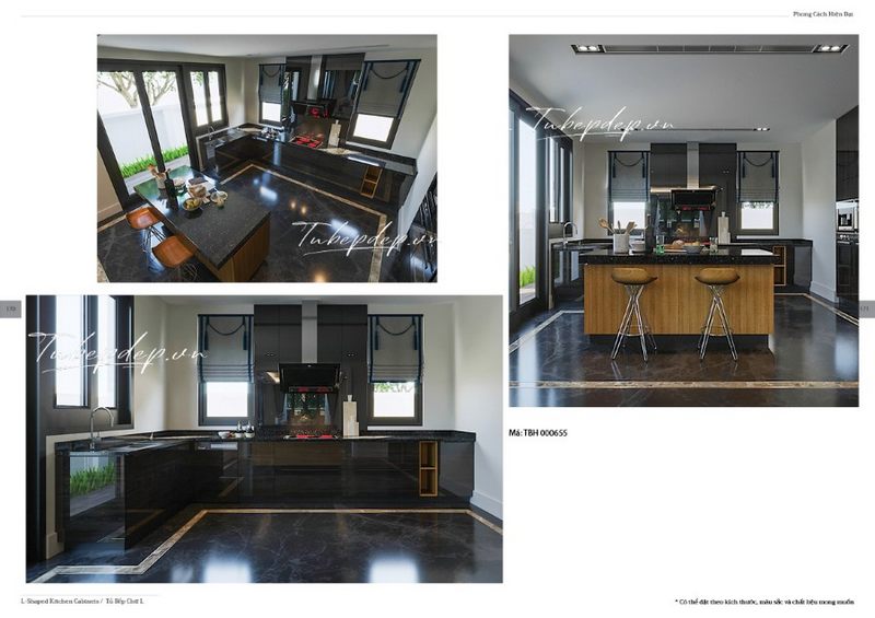 Cách bố trí nội thất phòng bếp biệt thự, nhà phố hiện đại tone mà đen bóng mang cảm giác bí ẩn, thúc đẩy sự tò mò và bắt tay vào bếp.