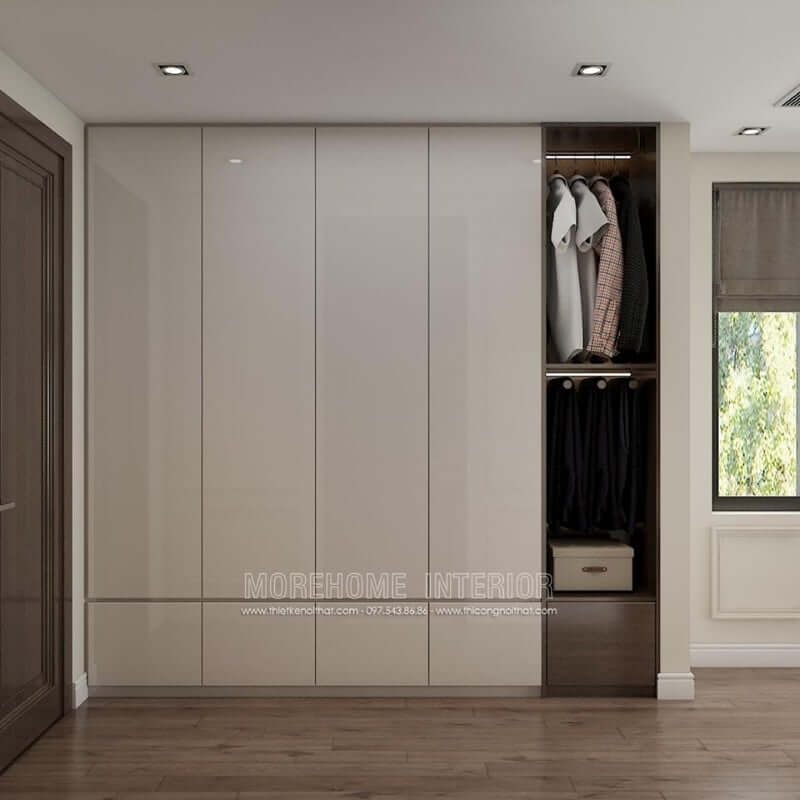 Mẫu tủ quần áo đẹp với chất liệu được sử dụng là gỗ công nghiệp acrylic bóng gương An Cường màu trắng tinh tế mang đến không gian hiện đại và cực kì thu hút
