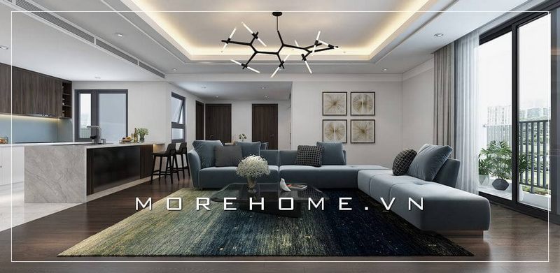 Thiết kế phòng khách chung cư hiện đại với cách bố trí sắp xếp nội thất hài hòa, hợp lý.