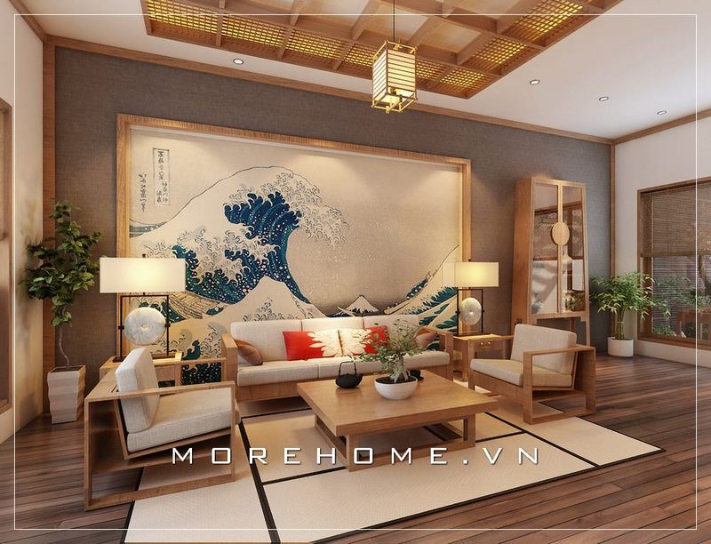 Thiết kế nội thất phòng khách liền phòng ăn theo phong cách gỗ việt tạo nên nét sang trọng và tiện nghi cho các thành viên trong gia đình trong không gian sinh hoạt chung
