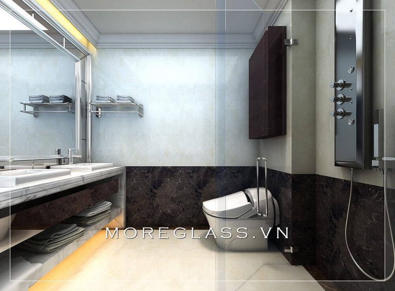 Vách tắm kính cường lực mang đến 1 không gian sống sự sang trọng và tiện nghi. Với phong cách thiết kế hiện đại mang đến cảm giác thoáng mát khi bước chân vào căn phòng.