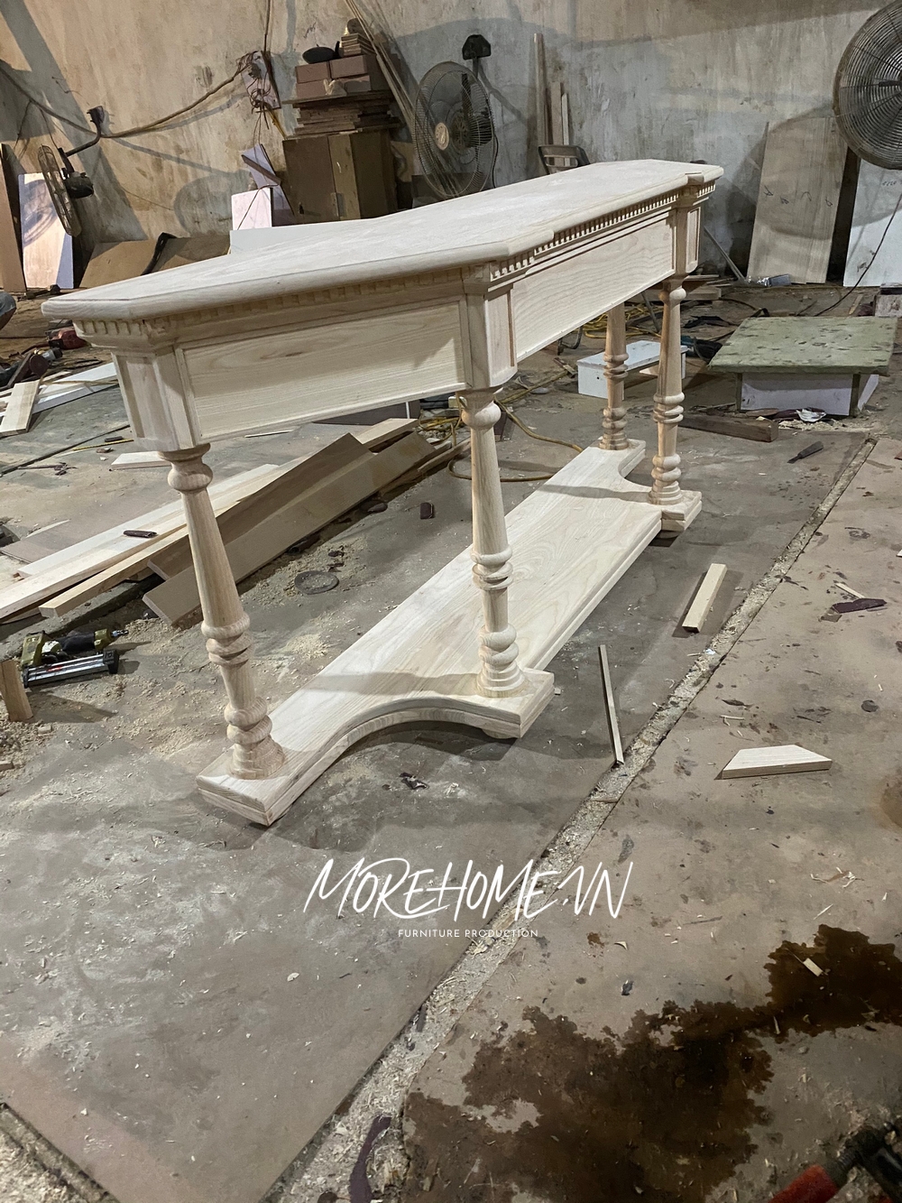 Morehome thi công trụ cầu thang gỗ óc chó, mặt bậc cầu thang gỗ tự nhiên đẹp cho biệt thự vinhomes imperia Hải Phòng